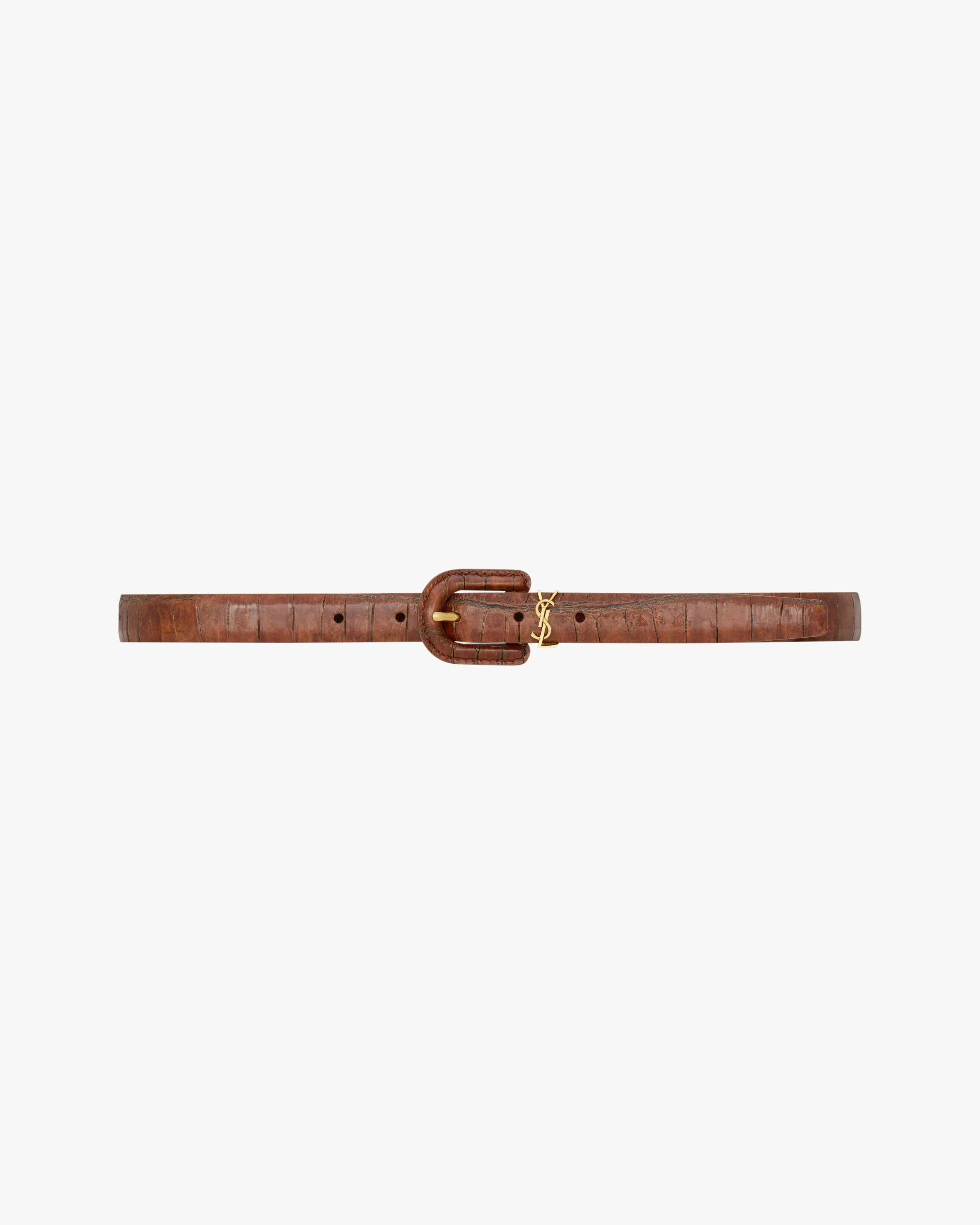 CASSANDRE COVERED U BUCKLE THIN BELT IN CROCODILE-EMBOSSED LEATHER