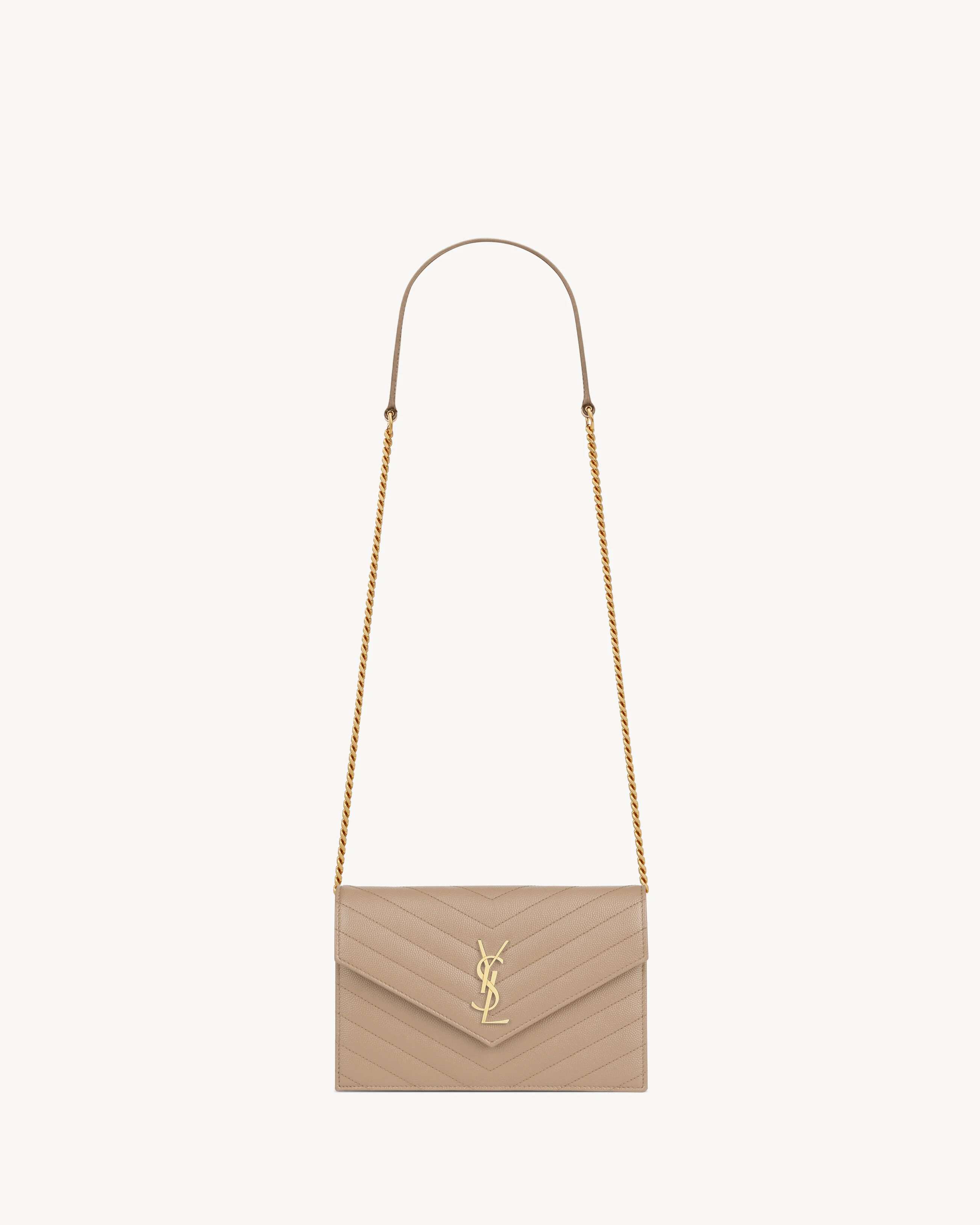 CASSANDRE ENVELOPE CHAIN WALLET IN GRAIN DE POUDRE LEATHER