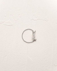 CHAIN RING MADE WITH RECYCLED GOLD, ADORNED WITH A DIAMOND-PAVED CASSANDRE CHARM. GOLD IS A PRECIOUS MATERIAL THAT IS MALLEABLE AND HIGHLY SENSITIVE TO SCRATCHING. THE PRODUCT IS EXPECTED TO EVOLVE AND PRESENT MARKS THROUGHOUT ITS LIFECYCLE. MOREOVER, AS GOLD IS A SOFT ALLOY, PIECES SHOULD NOT BE STACKED ONE ON TOP OF THE OTHER TO AVOID DAMAGING THEM. EVERY PIECE OF JEWELRY MUST BE STORED IN ITS ORIGINAL PACKAGING TO AVOID ANY FRICTION WITH OTHER OBJECTS THAT COULD SCRATCH IT. WHEN PART OF A SET, PIECES MUST BE STOCKED SEPARATELY. - RECYCLED GOLD - 56 DIAMONDS TOTALING 0,13CT.; CLARITY SI; COLOR GH - SLIDE ON - SAINT LAURENT ENGRAVING ON THE INSIDE OF THE CHARM - 18KT GREY GOLD 750/1000, DIAMOND - STYLE ID 763625Y80044008 - MADE IN ITALY