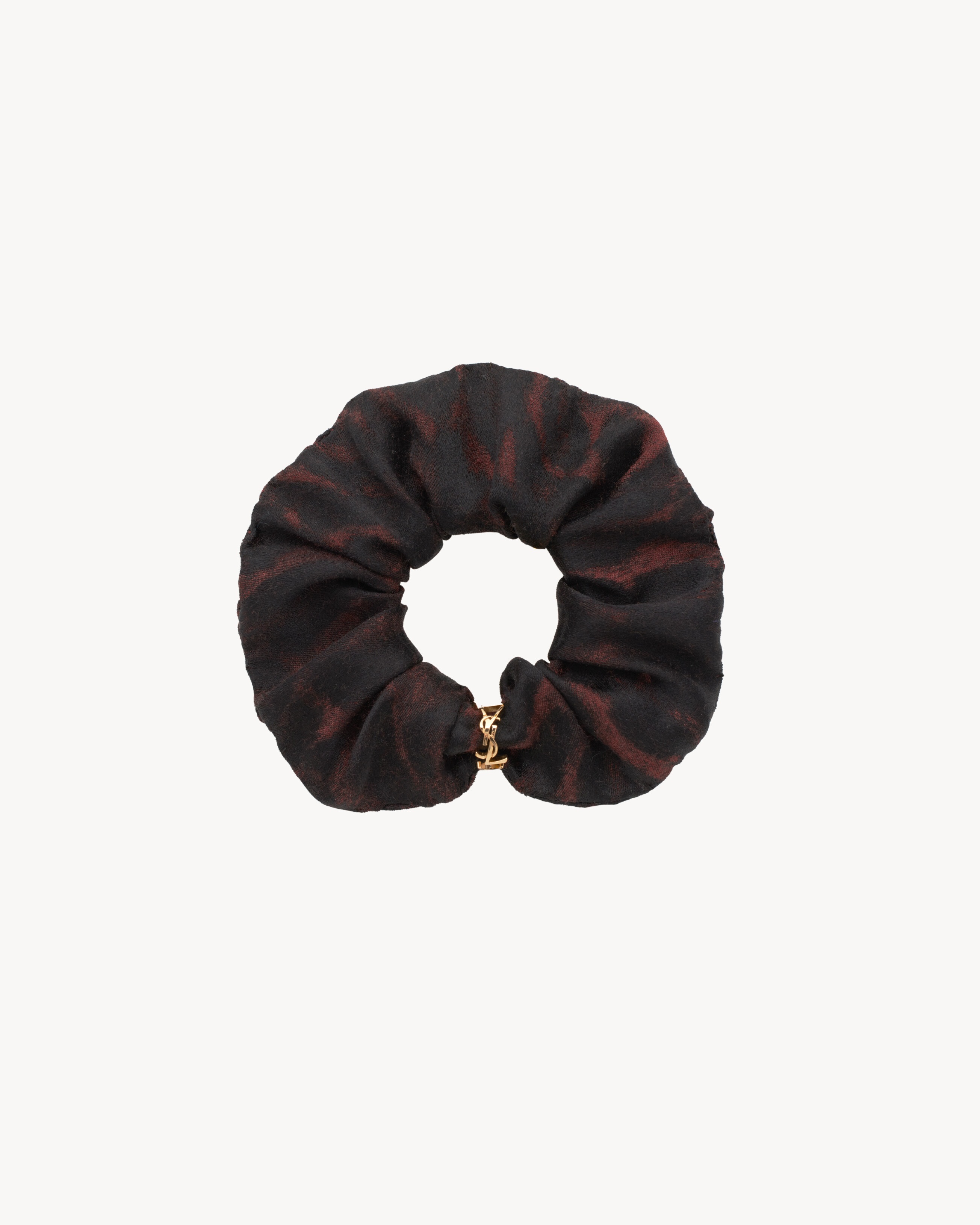 SCRUNCHIE DECORATED WITH A LEOPARD MOTIF, FEATURING A TWISTED CASSANDRE RING. - TWISTED CASSANDRE METAL RING - 65% SILK, 35% CASHMERE - STYLE ID 8431753YS369780 - MADE IN ITALY