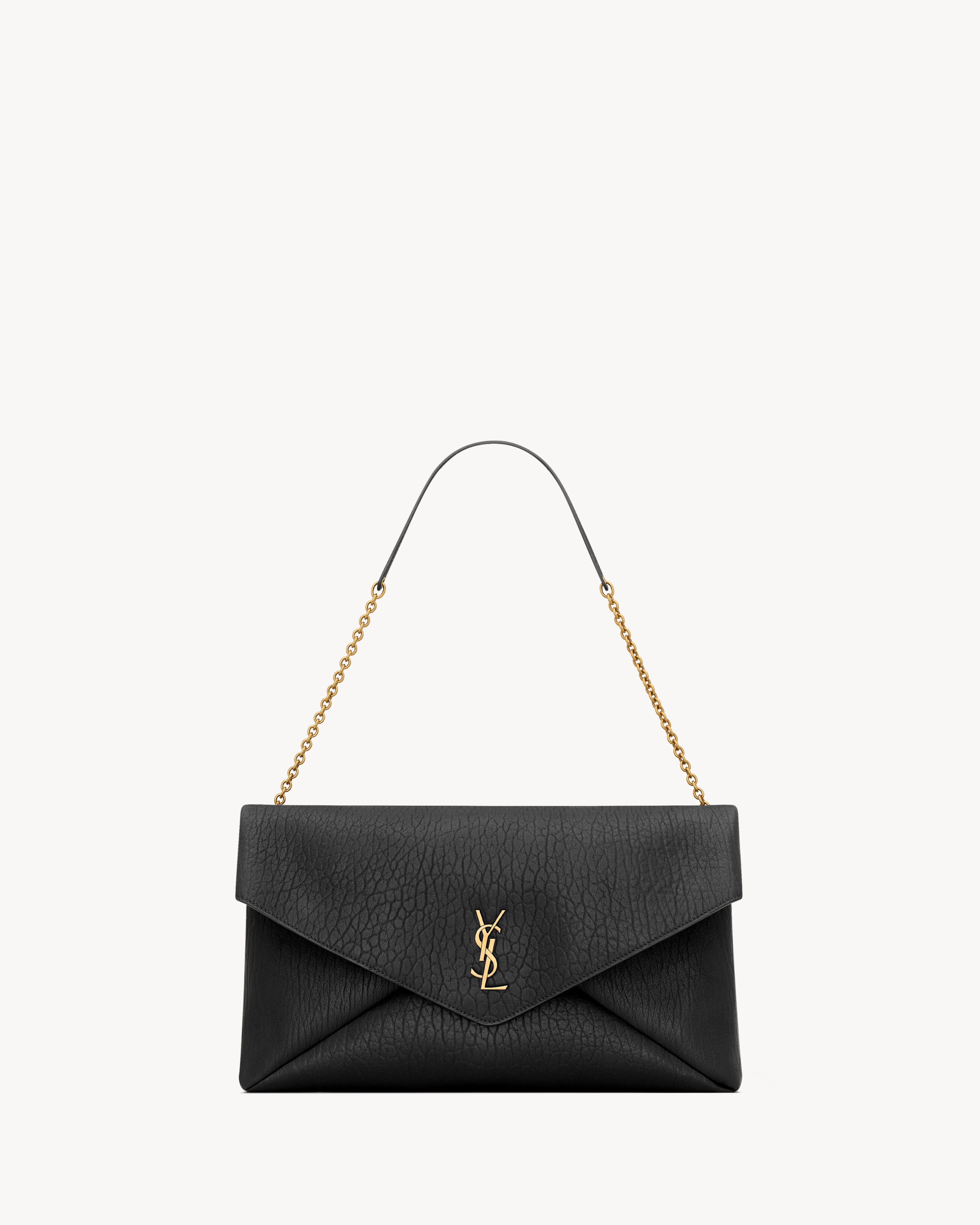 EXTRA LARGE CHAIN POUCH IN SUPPLE LAMBSKIN, DECORATED WITH THE CASSANDRE. A STOWABLE CABLE-CHAIN STRAP ALLOWS THIS MODERN AND VERSATILE BAG TO BE WORN ON THE SHOULDER OR HELD AS A CLUTCH. - LEATHER LINING - BRONZE-TONE HARDWARE - SNAP-BUTTON CLOSURE - ONE ZIP POCKET - DIMENSIONS: 35 X 22 X 3–4.2 CM / 13.8" X 8.7" X 1.2–1.7" - STRAP DROP: 28 CM / 11" - 90% LAMBSKIN 10% BRASS - STYLE ID 841702AACYT1000 - MADE IN ITALY
