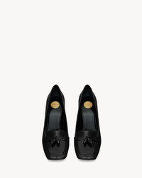 TASSEL LOAFER PUMPS WITH A SQUARE APRON TOE AND COVERED FLARED BLOCK HEEL. - LEATHER SOLE - ROUND SAINT LAURENT-ENGRAVED METAL PLAQUE ON THE INSOLE - HEEL HEIGHT: 9 CM / 3.5 INCHES - CALFSKIN - STYLE ID 841175AAEHF1000 - MADE IN ITALY