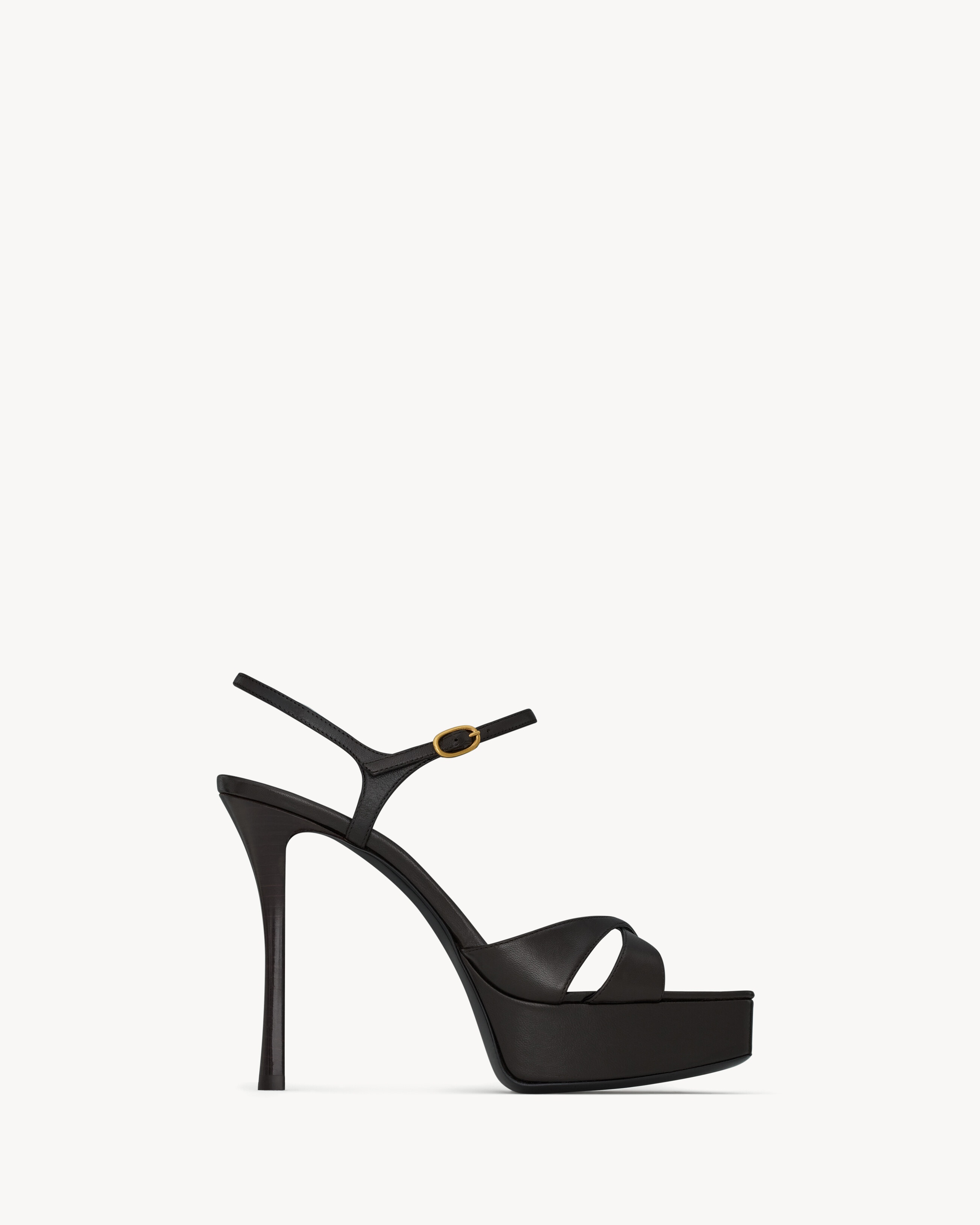 PLATFORM SANDALS WITH A SQUARE TOE AND CRISSCROSSED STRAPS, FEATURING A COVERED STILETTO HEEL. - LEATHER SOLE - ROUND SAINT LAURENT-ENGRAVED METAL PLAQUE ON THE INSOLE - ADJUSTABLE ANKLE STRAP - TOTAL HEEL HEIGHT: 11 CM / 4.3 INCHES - ARCH HEIGHT: 8.5 CM / 3.3 INCHES - PLATFORM HEIGHT: 2.5 CM / 1 INCH - 100% LAMBSKIN - STYLE ID 825303AADF02245 - MADE IN ITALY