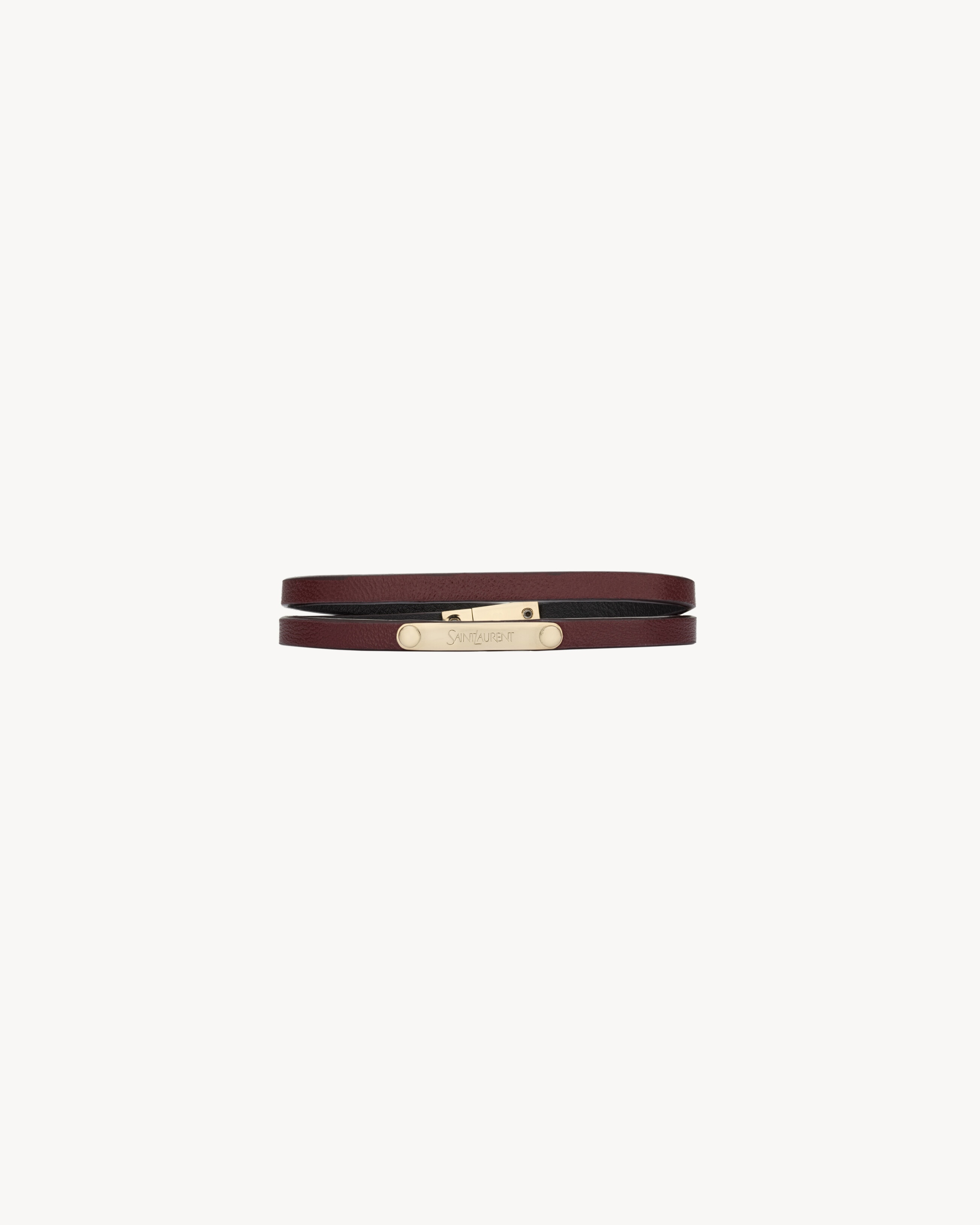 DOUBLE-WRAP BRACELET WITH SAINT LAURENT PLAQUE. - MAGNETIC BOX CLASP - SAINT LAURENT ENGRAVING - BRONZE-TONE HARDWARE - WIDTH: 0.5 CM / 0.2" PER STRAND - S: 16.5 CM / 6.5" - M: 17.5 CM / 6.9" - L: 18.5 CM / 7.3" - 10% BRASS 90%LEATHER - STYLE ID 840310AAE9A6748 - MADE IN ITALY