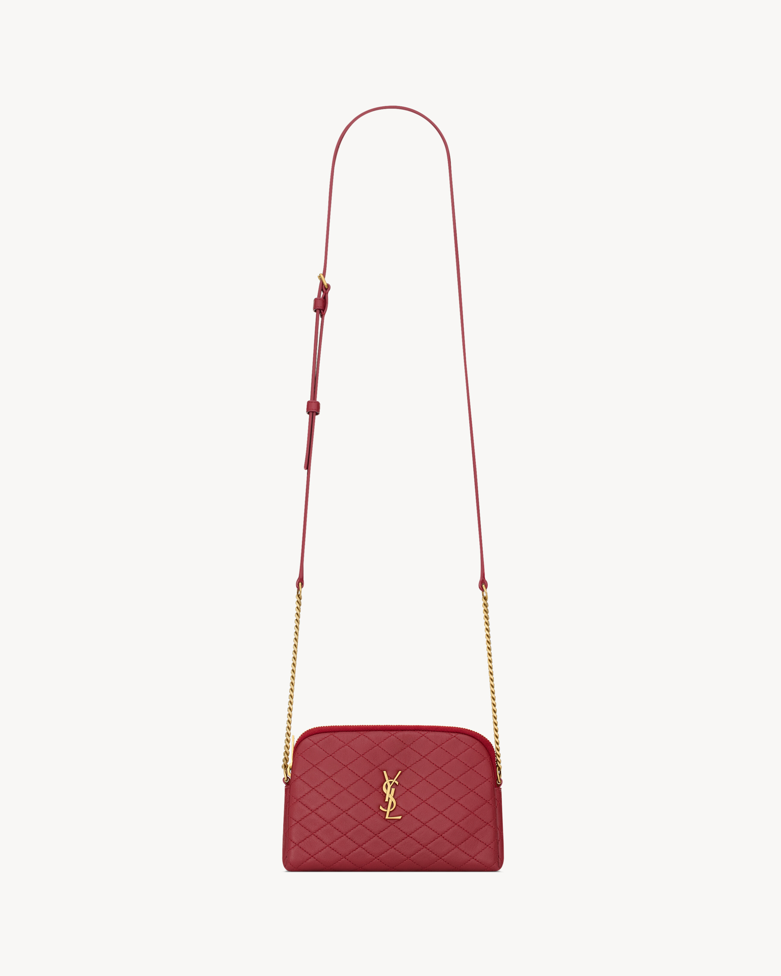MINI ZIP POUCH DECORATED WITH THE CASSANDRE AND DIAMOND-QUILTED OVERSTITCHING. THIS SLENDER AND LIGHTWEIGHT BAG FEATURES A CHAIN STRAP FOR SHOULDER OR CROSSBODY WEAR. - LEATHER LINING - BRONZE-TONE HARDWARE - ZIP CLOSURE - DIMENSIONS: 19 X 12 X 3 CM / 7.5" X 4.7" X 1.2" - STRAP DROP: 54 CM / 22" - LAMBSKIN - STYLE ID 7336671EL076644 - MADE IN ITALY