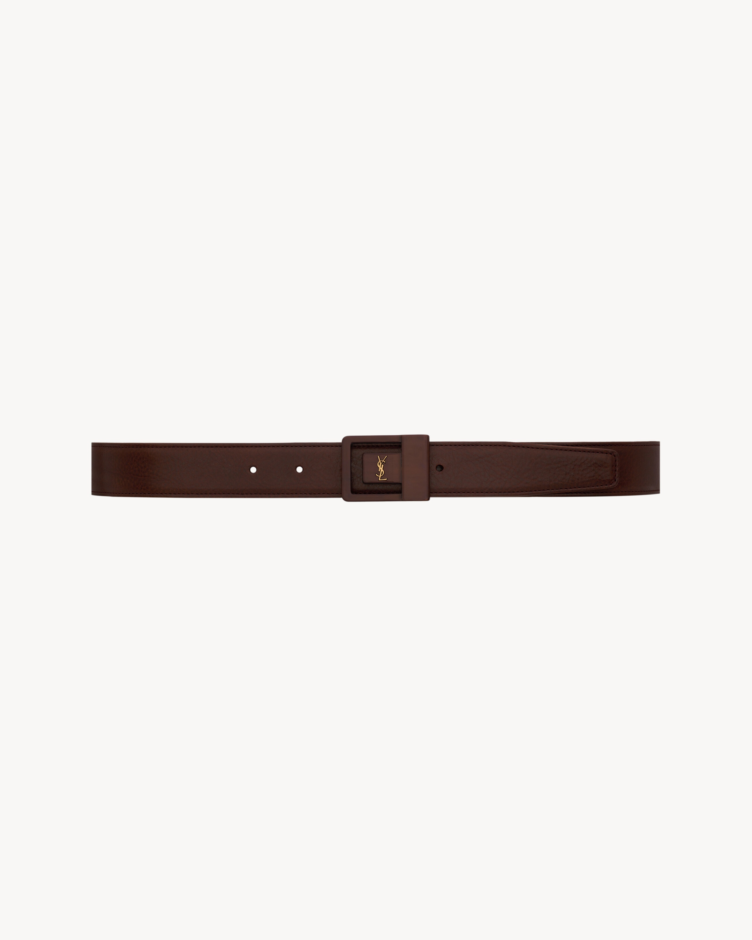BELT WITH A SQUARE RESIN BUCKLE, DECORATED WITH THE CASSANDRE. - BRONZE-TONE HARDWARE - ADJUSTABLE BUCKLE - DIMENSIONS: 3 CM / 1.2" - 95% CALF LEATHER 3% BRASS 2% RESIN - STYLE ID 829046AAEWU6810 - MADE IN ITALY