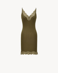 SEMI-SHEER, RIBBED, KNEE-LENGTH SLIP DRESS MADE WITH CERTIFIED SILK, FEATURING SCALLOPED LACE TRIM, A V NECKLINE, AND ADJUSTABLE SPAGHETTI STRAPS. - CERTIFIED SILK - V NECKLINE - ADJUSTABLE SHOULDER STRAPS - 100% SILK - STYLE ID 800158Y37SM1340 - MADE IN ITALY
