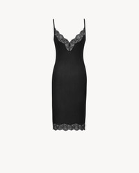 SEMI-SHEER, RIBBED, KNEE-LENGTH SLIP DRESS MADE WITH CERTIFIED SILK, FEATURING SCALLOPED LACE TRIM, A V NECKLINE, AND ADJUSTABLE SPAGHETTI STRAPS. - CERTIFIED SILK - V NECKLINE - ADJUSTABLE SHOULDER STRAPS - 100% SILK - STYLE ID 800158Y37SM1000 - MADE IN ITALY