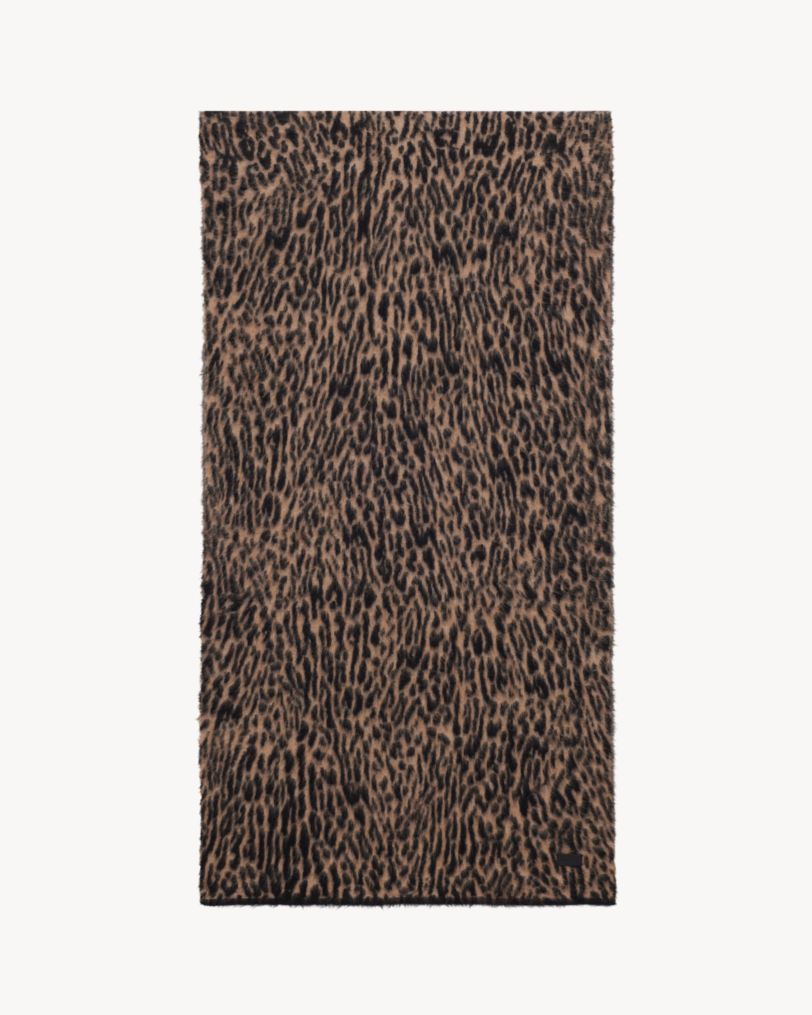 LONG KNITTED LEOPARD-PRINT SCARF, MADE WITH CERTIFIED MOHAIR AND CERTIFIED WOOL. - CERTIFIED MOHAIR AND CERTIFIED WOOL - SAINT LAURENT EMBOSSED LEATHER TAG - FRAYED ENDS - DIMENSIONS: 60 X 220 CM / 23.6" X 86.6" - 50% MOHAIR, 36% POLYAMIDE, 14% WOOL - STYLE ID 8414353YQ319760 - MADE IN ITALY