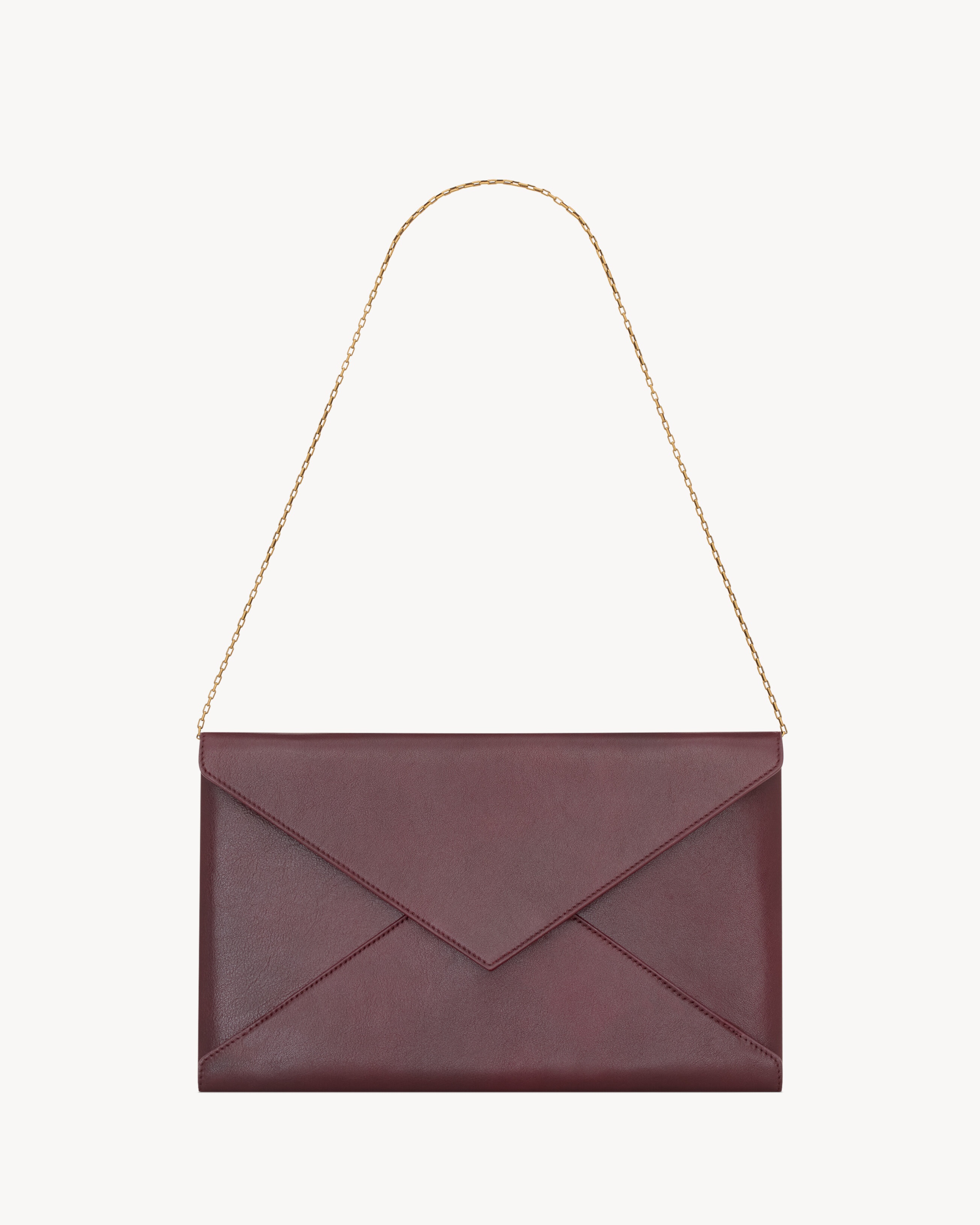 LARGE ENVELOPE POUCH DECORATED WITH THE SAINT LAURENT PARIS SIGNATURE. - LEATHER LINING - BRONZE-TONED HARDWARE - SNAP-BUTTON CLOSURE - DIMENSIONS: 27 X 16 X 0.5 CM / 10.6" X 6.3" X 0.2" - STRAP DROP: 27.5 CM / 10.8" - 50% CALFSKIN 50% LAMBSKIN - STYLE ID 820490AADOO6195 - MADE IN ITALY