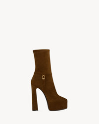 PLATFORM ANKLE BOOTS WITH AN ALMOND TOE, BLOCK HEEL, AND SAINT LAURENT ENGRAVED BUCKLE DETAIL AT THE ANKLE, FEATURING A SIDE ZIP CLOSURE. - LEATHER SOLE - SIDE ZIP CLOSURE - TOTAL HEEL HEIGHT: 15.5 CM / 6.1 INCHES - ARCH HEIGHT: 10.5 CM / 4.1 INCHES - PLATFORM HEIGHT: 5 CM / 2 INCHES - 90% LAMBSKIN, 10% BRASS - STYLE ID 8406720LI002330 - MADE IN ITALY