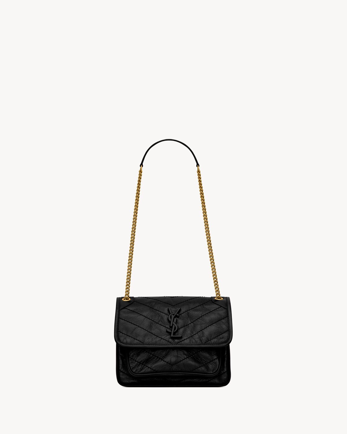 FLAP BAG IN VINTAGE CALF LEATHER, FEATURING CHEVRON QUILT OVERSTITCHING AND LEATHER-ENCASED CASSANDRE. LIGHT, WITH TWO COMPARTMENTS AND A LARGE BACK SLOT POCKET. FEATURES A SLIDING CHAIN STRAP THAT CAN BE WORN ON THE SHOULDER OR CROSSBODY. - CHROME AND METAL-FREE TANNED LEATHER - ORGANIC COTTON LINING - LIGHT BRONZE BRASS HARDWARE - ONE EXTERIOR BACK POCKET - MAGNETIC SNAP TAB - TWO INTERIOR POCKETS - DIMENSIONS: 8.2 X 6 X 2.9 INCHES - CHAIN LENGTH: 11.8 TO 22.4 INCHES - CALFSKIN LEATHER - STYLE ID 6331600EN071000 - MADE IN ITALY