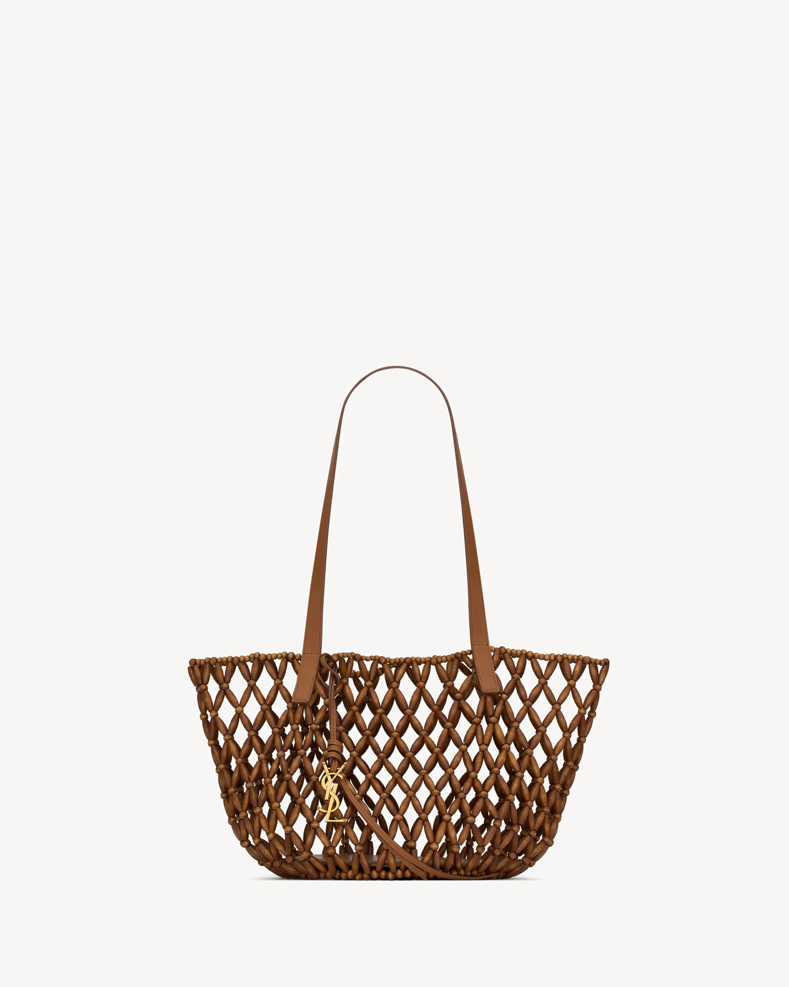 BASKET BAG IN WOOD BEADS. THIS COMPACT AND VERSATILE BAG FEATURES A CASSANDRE KEYRING AND REMOVABLE ZIP POUCH. - CERTIFIED WOOD - BRONZE-TONE HARDWARE - ONE REMOVABLE ZIP POUCH - DIMENSIONS: 28–49 X 35 X 30 CM / 11–19.3" X 13.8" X 11.8" - STRAP DROP: 27 CM / 10.6" - WOODEN BEADS, CALFSKIN, BRASS - STYLE ID 862075KAAAZ9384 - MADE IN ITALY