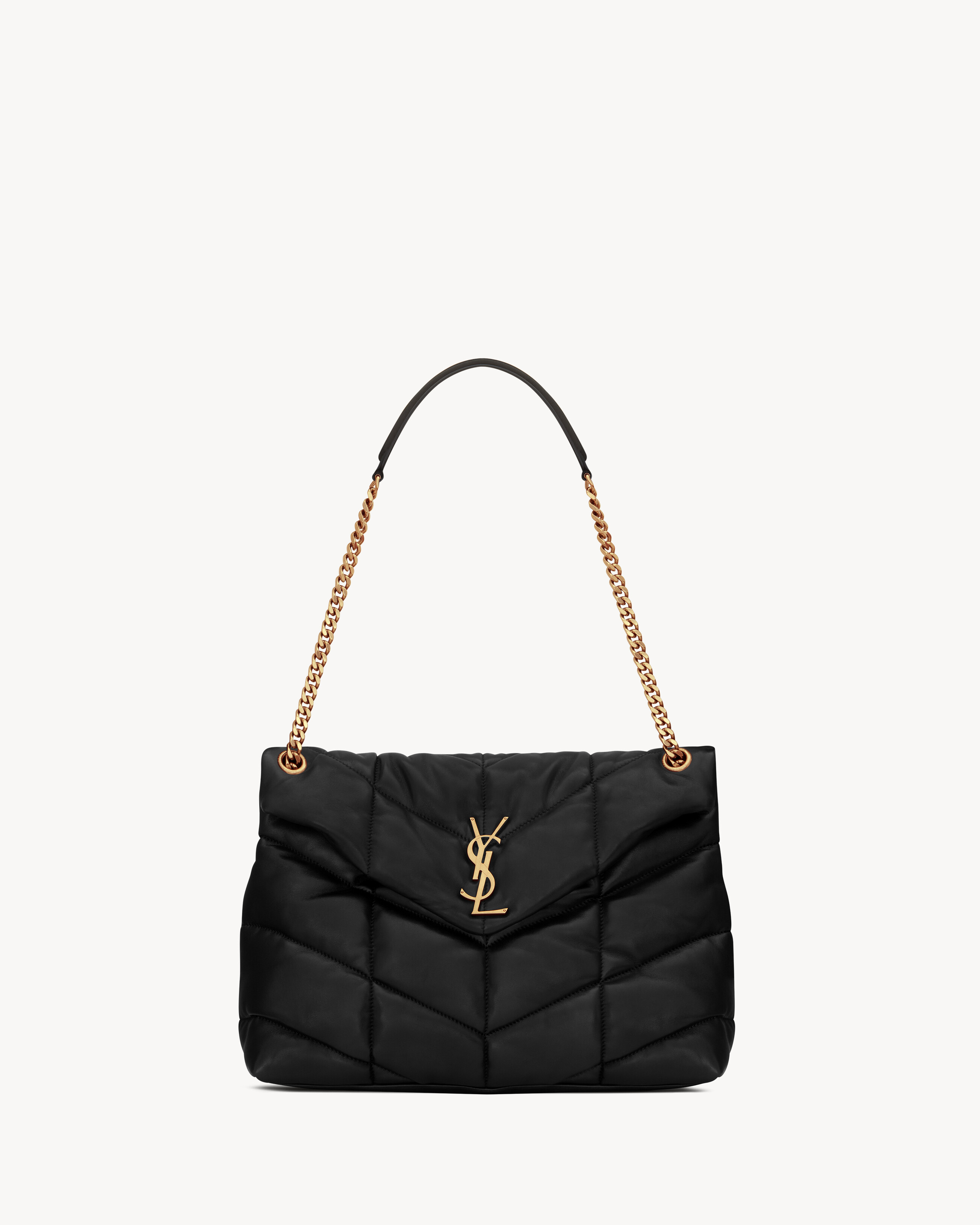 THE ICONIC LOULOU IN PUFFER VERSION, WITH CHEVRON QUILT OVERSTITCHING. FEATURING A SLIDING CHAIN STRAP THAT CAN BE WORN ON THE SHOULDER OR CROSSBODY. - GROSGRAIN LINING - LIGHT BRONZE BRASS HARDWARE - MAGNETIC SNAP TAB - ONE INTERIOR ZIPPED POCKET - DIMENSIONS: 13.7 X 9 X 5.3 INCHES - CHAIN LENGTH: 11 TO 18.8 INCHES - LAMBSKIN, METAL - STYLE ID 5774751EL071000 - MADE IN ITALY