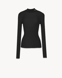 LONG-SLEEVE RIB-KNIT SWEATER MADE WITH ORGANIC SILK FEATURING A MOCK NECK DECORATED WITH THE ICONIC METAL YSL SIGNATURE. - 100% SILK - ORGANIC SILK - MOCK NECK - STYLE ID 654478Y75AI1000 - MADE IN ITALY