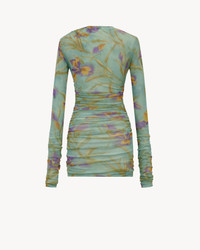 RUCHED MINI DRESS IN FLORAL TULLE JERSEY