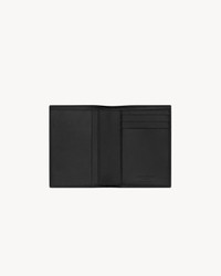 SINGLE-FOLD WALLET MADE WITH UPCYCLED LEATHER, WITH EMBOSSED SAINT LAURENT PARIS SIGNATURE. - UPCYCLED LEATHER - DIMENSIONS: 9 X 11.5 X 2 CM / 3.5 X 4.5 X 0.8 INCHES - INTERIOR: FOUR CARD SLOTS, TWO RECEIPT COMPARTMENTS, ONE BILL COMPARTMENT - BRONZE-TONED HARDWARE - LEATHER LINING - CALFSKIN LEATHER - STYLE ID 668726H3Z2W1000 - MADE IN ITALY