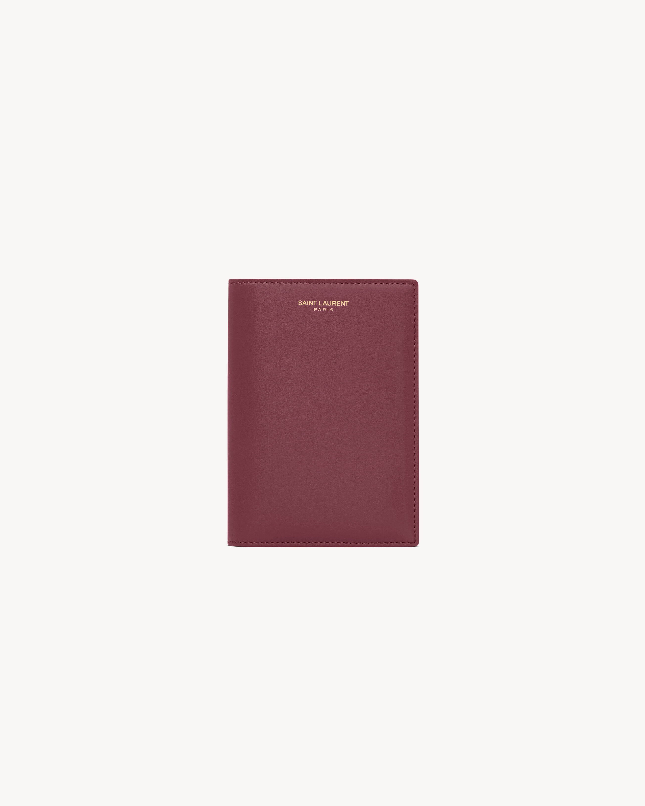 PASSPORT HOLDER WITH INTERNAL CARD SLOTS, DECORATED WITH THE SAINT LAURENT PARIS SIGNATURE. - LEATHER LINING - BRONZE-TONE HARDWARE - FIVE CARD SLOTS - TWO PASSPORT INSERTS - DIMENSIONS: 10 X 14 X 1 CM / 3.9" X 5.5" X 0.3" - 100% CALFSKIN - STYLE ID 821859AAE526593 - MADE IN ITALY