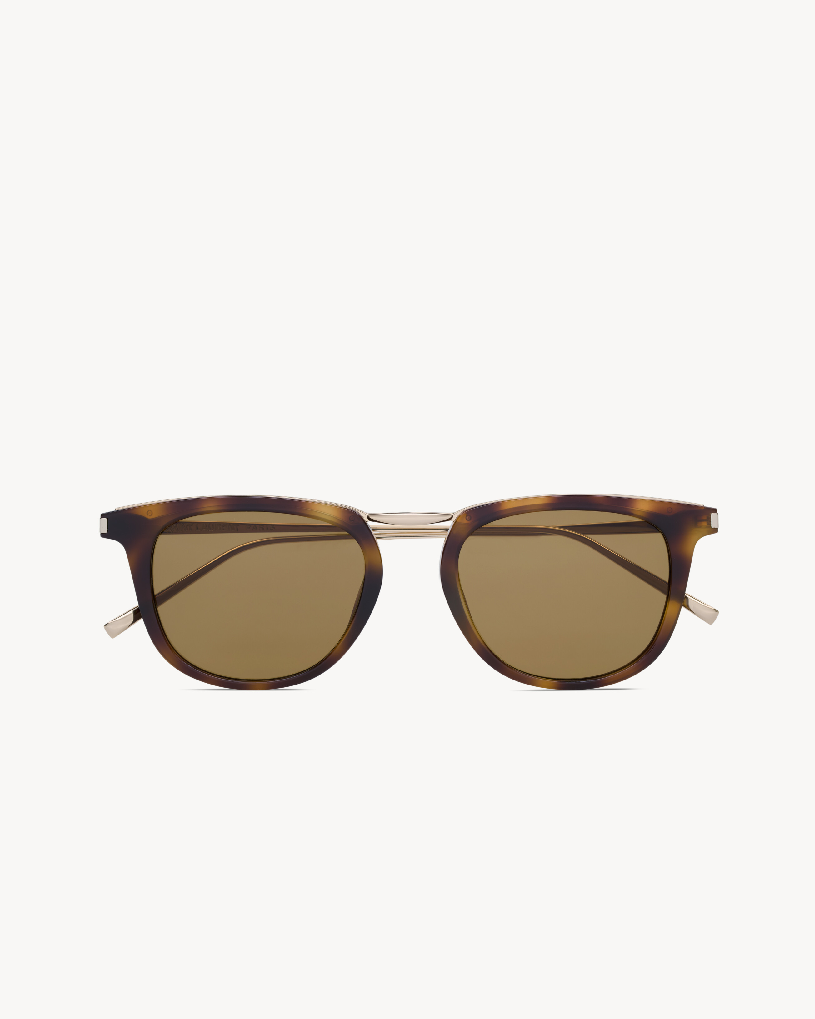 TORTOISESHELL WELLINGTON SUNGLASSES WITH ACETATE FRAMES AND NYLON LENSES, FEATURING A METAL BRIDGE AND ARMS. - SAINT LAURENT ENGRAVED TEMPLES - 100% UVA/UVB PROTECTION - FRAMES COMPATIBLE WITH PRESCRIPTION LENSES - METAL HINGE DETAIL - LENS: 50 MM / 2" - BRIDGE: 20 MM / 0.8" - TEMPLE: 145 MM / 5.7" - 40% ACETATE, 40% METAL, 20% NYLON - STYLE ID 810623Y99712350 - MADE IN JAPAN