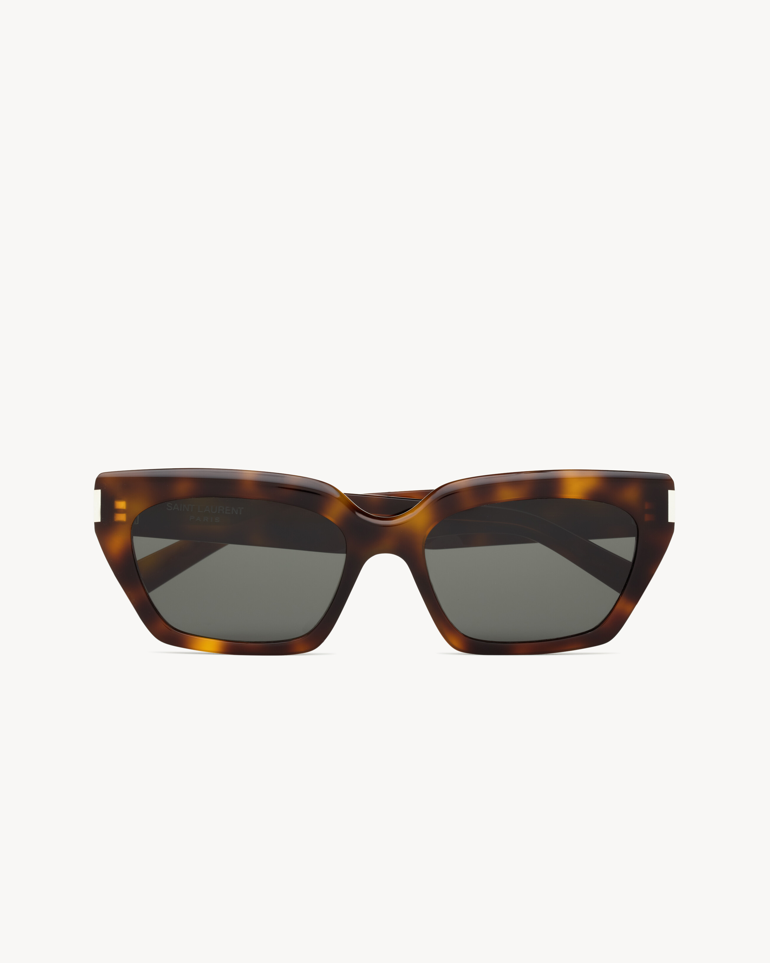 GEOMETRIC CAT-EYE SUNGLASSES WITH TORTOISESHELL ACETATE FRAMES AND NYLON LENSES. - SAINT LAURENT ENGRAVED TEMPLES - 100% UVA/UVB PROTECTION - FRAMES NOT COMPATIBLE WITH PRESCRIPTION LENSES - METAL HINGE DETAIL - LENS: 55 MM / 2.2" - BRIDGE: 18 MM / 0.7" - TEMPLE: 145 MM / 5.7" - 80% ACETATE 20% NYLON - STYLE ID 843052Y99562300 - MADE IN ITALY