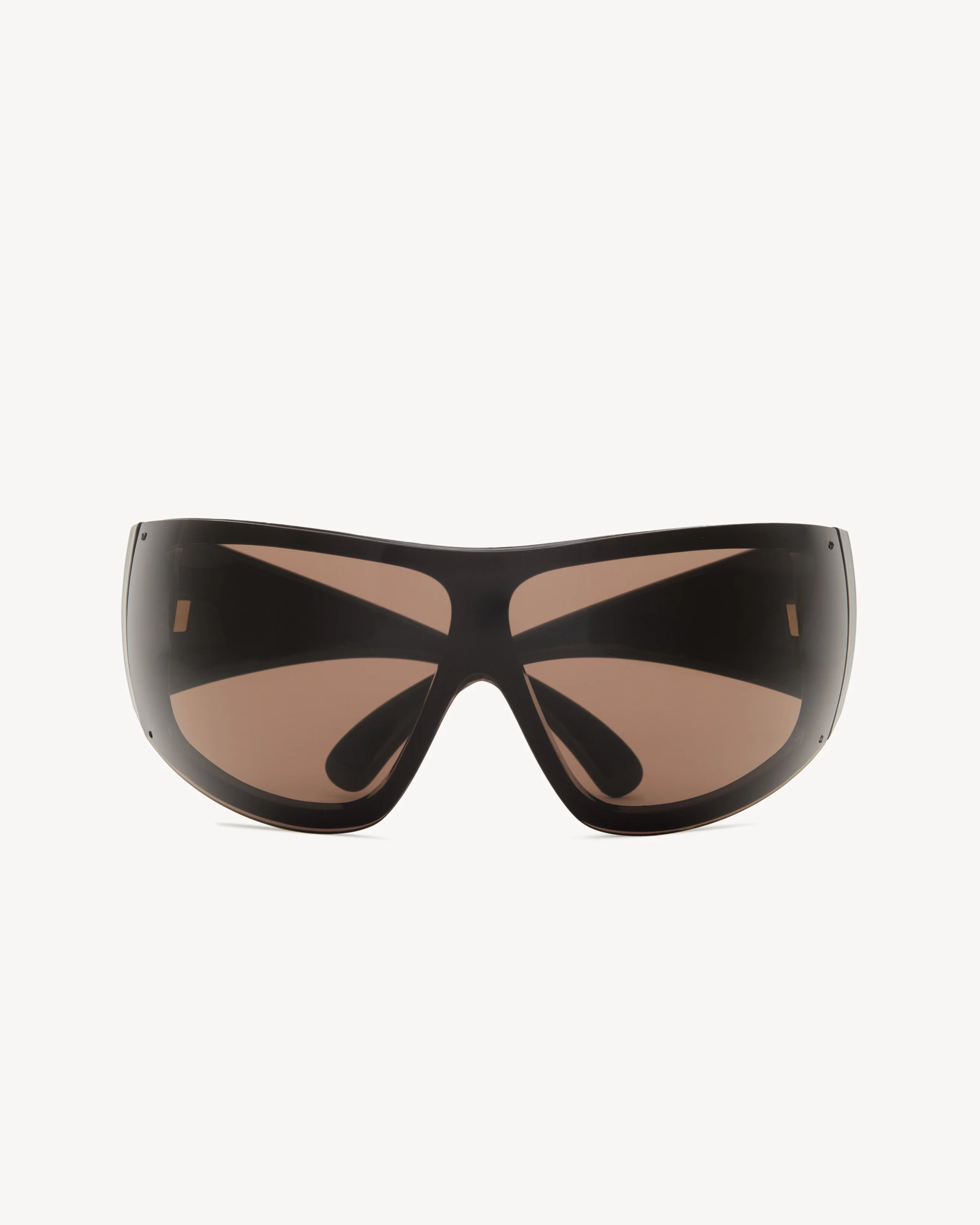 OVERSIZED AVIATOR SHIELD SUNGLASSES WITH INJECTION FRAMES AND NYLON LENSES, FEATURING WIDE TEMPLES. - SAINT LAURENT INSCRIBED TEMPLES - 100% UVA/UVB PROTECTION - FRAMES NOT COMPATIBLE WITH PRESCRIPTION LENSES - LENS: 99 MM / 3.9" - BRIDGE: 1 MM / 0" - TEMPLE: 115 MM / 4.5" - INJECTION, NYLON - STYLE ID 870335Y99582520 - MADE IN JAPAN