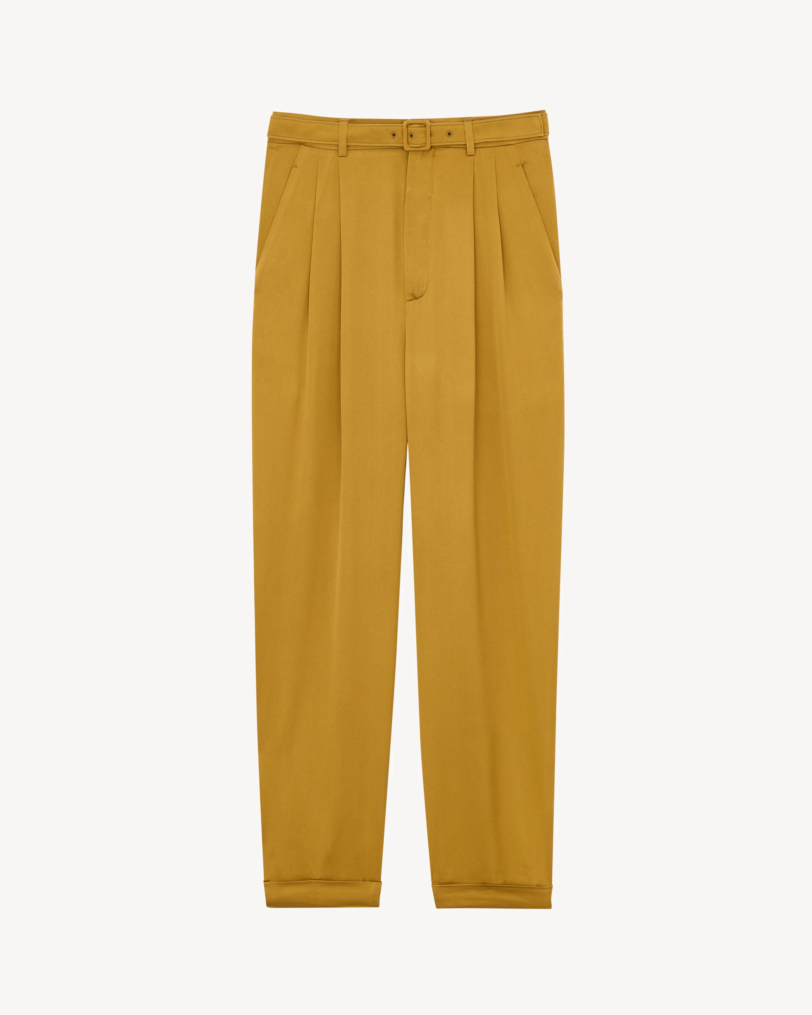 HIGH-WAISTED BELTED TAILORED PANTS MADE WITH CERTIFIED SILK, FEATURING A SLIM-FIT CARROT LEG WITH A DOUBLE PLEAT AND CENTER CREASE. - CERTIFIED SILK - CONCEALED FRONT BUTTON AND ZIP CLOSURE - TWO SLASH POCKETS AT THE FRONT - TWO WELT POCKETS AT THE BACK - ADJUSTABLE PIN-BUCKLE BELT - 100% SILK - STYLE ID 854428Y4K192592 - MADE IN ITALY