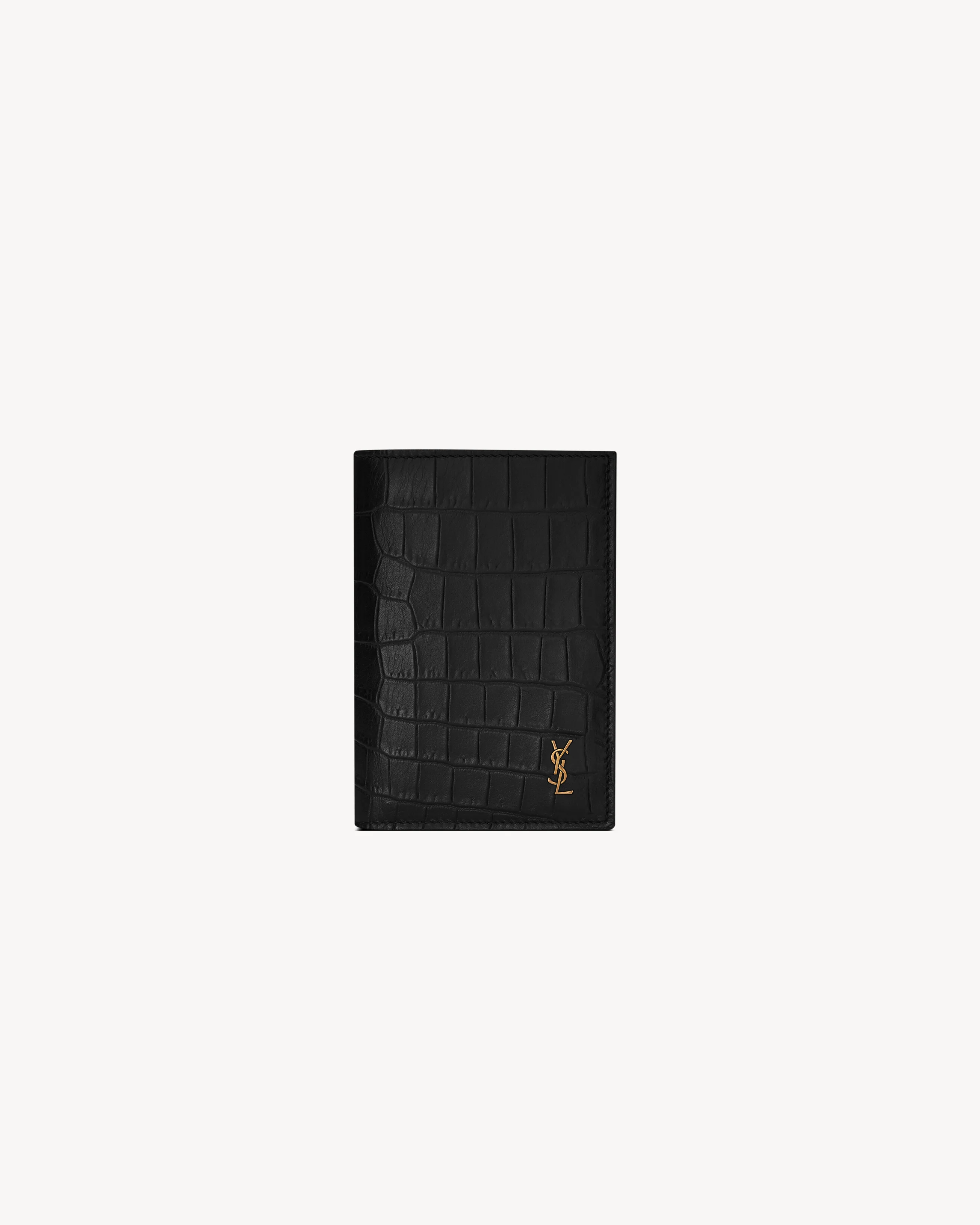 TINY CASSANDRE CREDIT CARD WALLET IN CROCODILE-EMBOSSED MATTE LEATHER