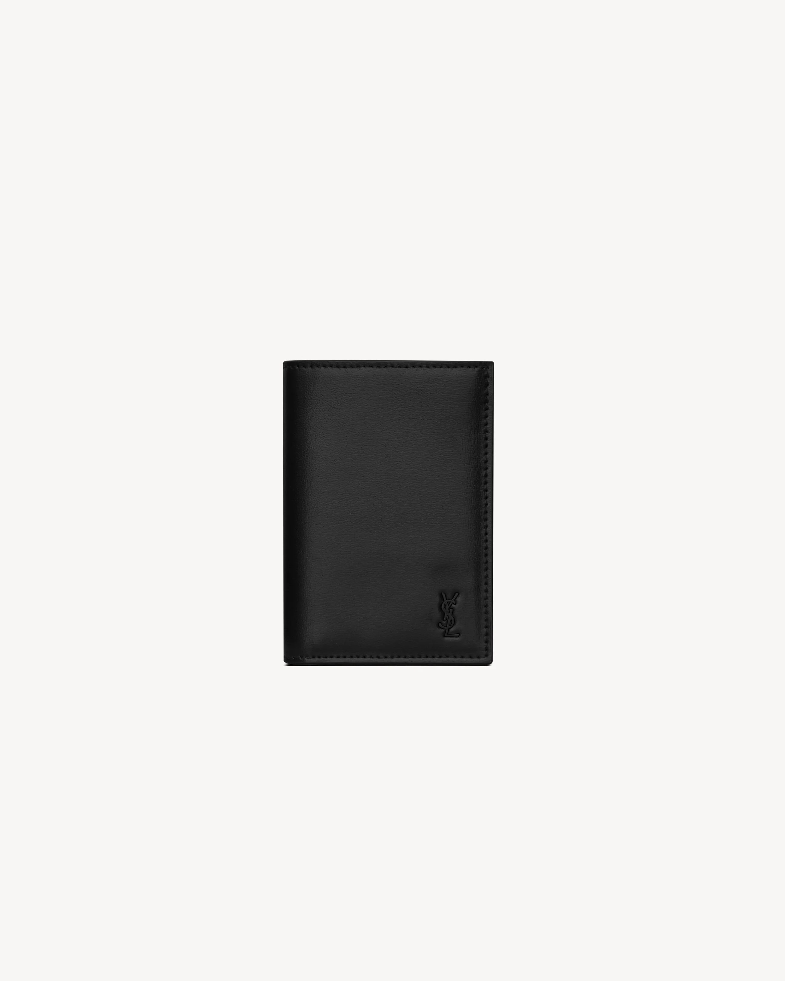 SINGLE-FOLD WALLET DECORATED WITH THE CASSANDRE. - DIMENSIONS: 8 X 11 X 2 CM / 3.1 X 4.3 X 0.7 INCHES - MATTE BLACK METAL HARDWARE - INTERIOR: ONE BILL COMPARTMENT, FOUR CARD SLOTS, TWO RECEIPT COMPARTMENTS - CALFSKIN LEATHER - STYLE ID 8479581JB0U1000 - MADE IN ITALY
