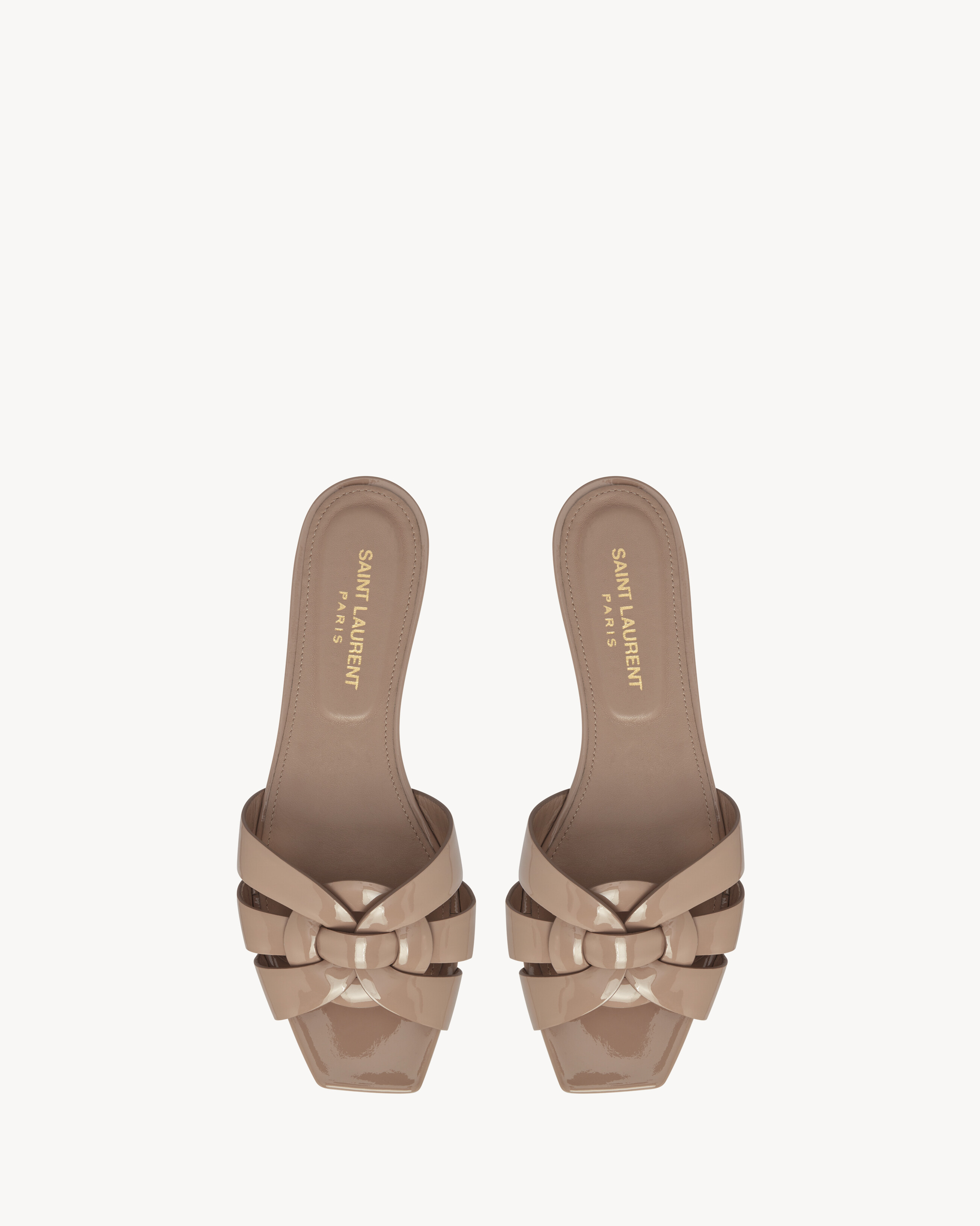 SAINT LAURENT SLIDE SANDALS IN PATENT LEATHER WITH INTERTWINING STRAPS. WE RECOMMEND SELECTING HALF SIZE BIGGER THAN YOUR USUAL SIZE. - 100% CALFSKIN LEATHER - TOTAL HEEL HEIGHT: 0,5 CM / 0.2 INCHES - LEATHER SOLE - STYLE ID 571952B8I009935 - MADE IN ITALY