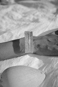 THE DESIGN STORY Inspired by the Ancient Greek goddess of the hunt, our Artemis bracelet represents strength and exploration. The design is delicate, yet robust, characterised by a beautiful feathered texture — a signature pattern for YSSO. Details Made in Greece, from up to 35% recyclable bronze double plated with 18 and 24 karat gold. Artfully hand-sculpted, fully adjustable. Weighs 44 grams.