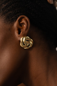 THE DESIGN STORY Danielle Copperman x YSSO: Our Bal Earrings take on the form of infinity knots — geometric sculptures with no beginning or end. They frame the face in a golden light and can be styled for any occasion. Details Made in Greece, from up to 35% recyclable bronze double plated with 18 and 24 karat gold. Artfully hand-sculpted for lightweight feel. Designed with a post-back. L:3cm W: 3.2cm Each side is 11.5 grams.v