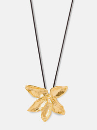 St Barth meets Greece in an exclusive collaboration hand-sculpted by YSSO for Eden Rock - St Barths. The frangipani flower, soft-edged and fragrant, it informs the gentle structure of this design drawing on the quiet elegance of island mornings, sculpted to echo nature's own balance of delicacy and strength. Each necklace is hand-sculpted in Greece. Details Made in Greece, from up to 35% recyclable bronze double plated with 18 and 24 karat gold. Artfully hand-sculpted, fully adjustable. The length of the cord in the picture is indicative. Weighs 31 grams.