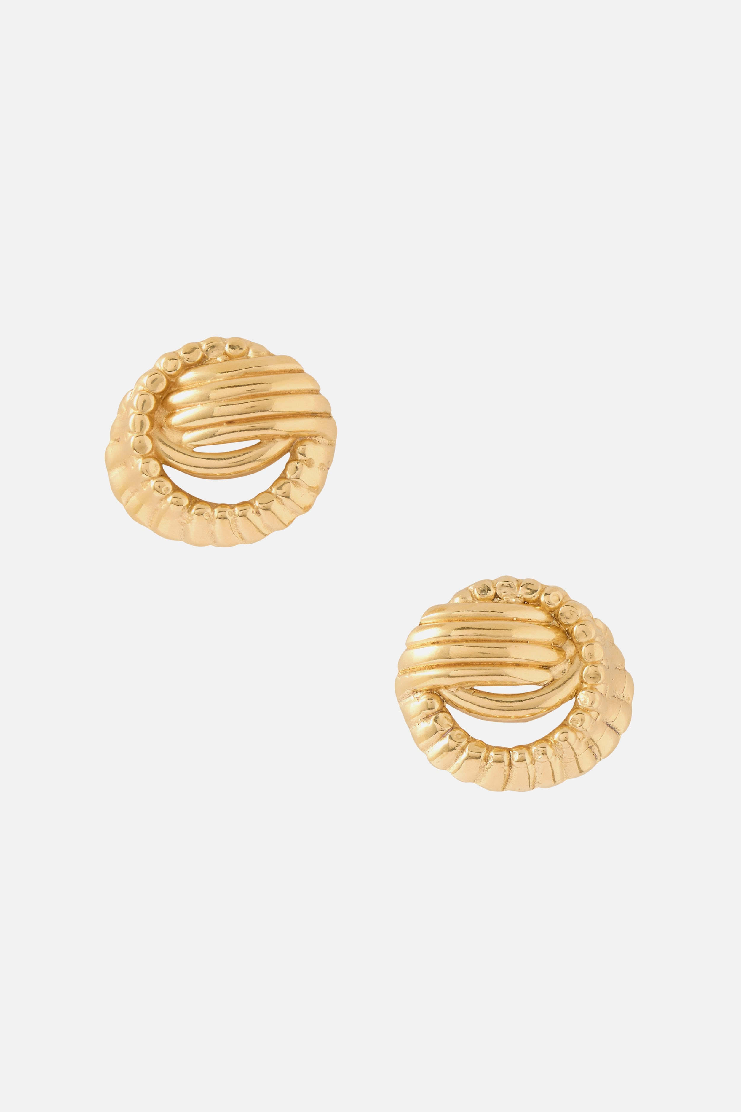 THE DESIGN STORY As the goddess of victory in all things — including art, music, war and athletics — Nike is an endlessly inspiring figure in Greek Mythology. Our Nike earrings pay homage to the goddess, hand-carved to emulate her strength and beauty. Details Made in Greece, from up to 35% recyclable bronze double plated with 18 and 24 karat gold. Artfully hand-sculpted for lightweight feel. Designed with a post-back and hollow for comfort. L: 2.3cm W: 2cm Each side weighs 5.5 grams.