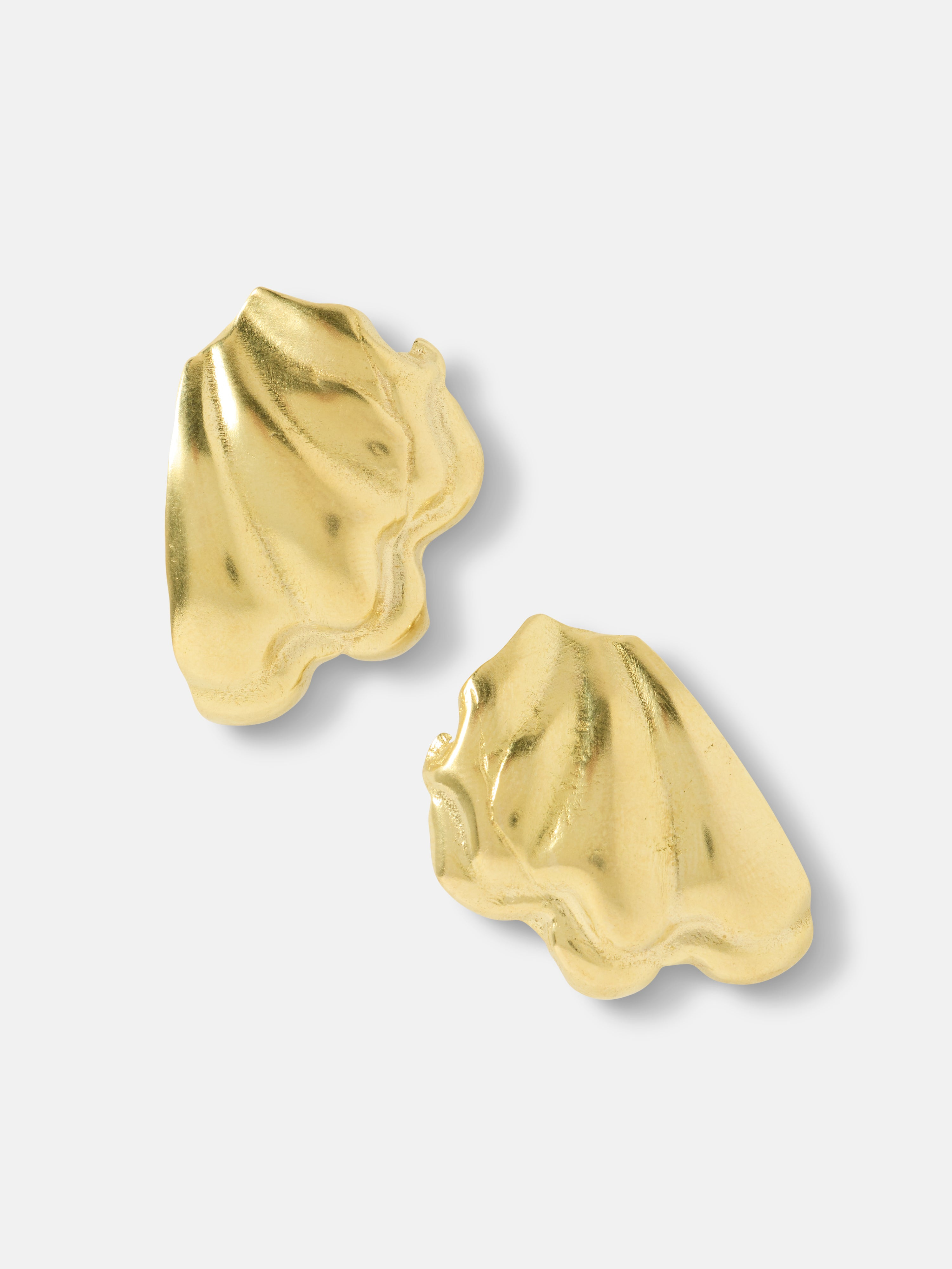 Designed to echo the flowing lines of the Birth of Venus necklace and bracelet, the Ocean Earrings capture the joy of waves and the timeless pull of the sea. Sculptural and softly irregular, each earring mirrors the natural forms shaped by water — fluid, organic, and ever-changing. Their surface catches the light with every movement, like sunlight playing across the ocean. Together, the pair is deliberately non-identical, much like the sea itself: always balanced, never static. Wear them as part of the Birth of Venus set or on their own — as a reminder of freedom, femininity, and the beauty found at the edge of land and water. Details Made in Greece, from up to 35% recyclable bronze double plated with 18 and 24 karat gold. Artfully hand-sculpted for lightweight. Designed with a post-back and hollow for comfort. Each side weighs 6.5 grams.