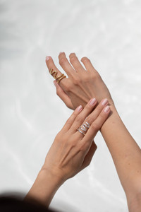 Since antiquity, the snake has held a powerful presence in Greek symbolism—embodying transformation, eternal renewal, and divine protection. From the armlets of Minoan priestesses to the gilded serpent rings of Hellenistic queens, snake motifs in Greek jewellery reflect both beauty and mystery. Coiled with intention, each curve echoes ancient myth: from the healing staff of Asclepius to Medusa’s serpentine crown. In wearing a snake design, one wears centuries of myth, protection, and quiet strength—jewellery not just to adorn, but to empower. This piece is brought to life through a hand-sculpting creating a snake in abstraction. Crafted entirely by hand in Greece. Details Made in Greece, from sterling silver. Artfully hand-sculpted, fully adjustable. Weighs 11.4 grams.