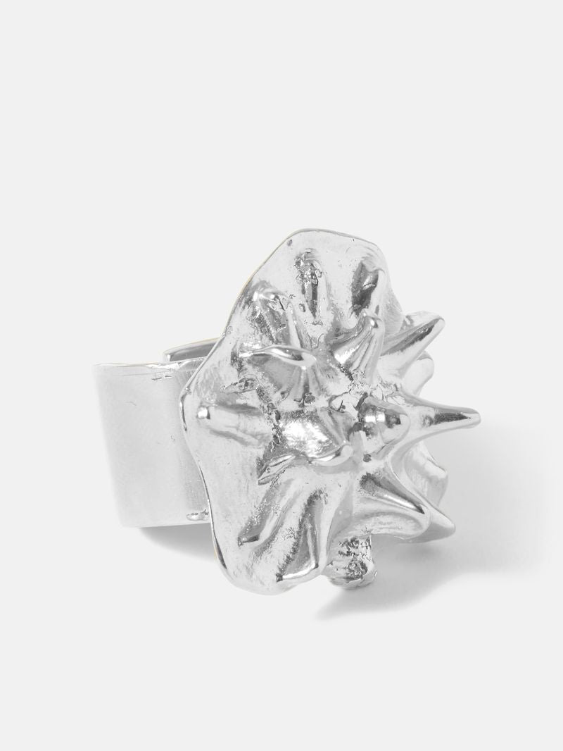 Crafted with a keen eye for detail, the Sea Urchin ring feature a stunning depiction of this fascinating creature. The intricate textures and contours of the sea urchin are expertly captured, creating a multi-dimensional effect. Details Made in Greece, from sterling silver. Artfully hand-sculpted. Weighs 21 grams.
