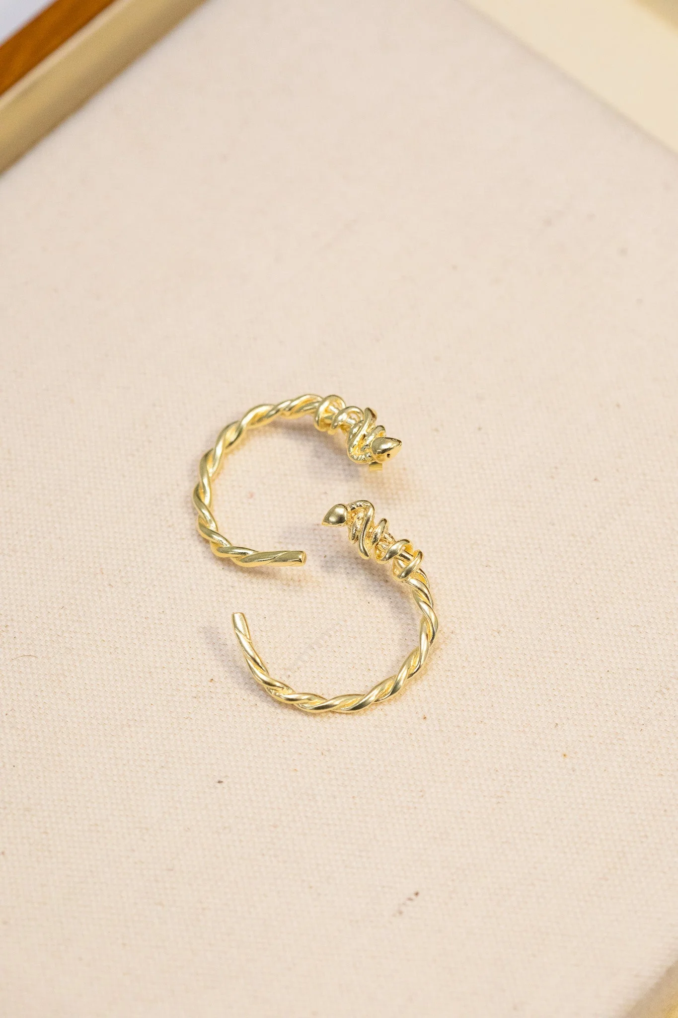 Details Solid bronze plated with recycled 18k and 24k gold for lasting durability and rich colour. Each piece incorporates up to 40% recycled metal. Artfully made in Greece by hand for lightweight feel. Designed with a post-back. L: 3.7cm, W: 0.4cm