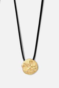 THE DESIGN STORY Part of our exclusive capsule collection with One&Only Kea Island, the Tetras small pendant is designed after the island’s ancient currency. The Tetras was a coin rumoured to have been made in tribute to the goddess Athena. Carved with four triangles on the coin face — said to represent the four seasons — they are highly prized by collectors today. The small golden Tetras pendant is suspended by a contrasting black string and features a hand-engraved "KEA" at the back. Details Made in Greece, from up to 35% recyclable bronze double plated with 18 and 24 karat gold. Artfully hand-sculpted, fully adjustable.