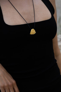 The warm winds of the Cyclades speak to us through our Whisper of the Wind necklace. The delicate, rippling texture mimics that of the Aegean Sea at sunset, a golden glow reflecting off the wearers chest. To be paired with the Whisper of the Wind Earrings. Details Made in Greece, from up to 35% recyclable bronze double plated with 18 and 24 karat gold. Artfully hand-sculpted, fully adjustable. The length of the cord in the picture is indicative. Weighs 18 grams.