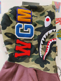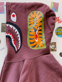 Bape A Bathing Ape 1st Camo Shark Sweat Padded Varsity Hoodie Jacket Burgundy / Black Size M Gently used, worn a couple of times, no flaws - 9/10 - 100% Authentic