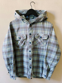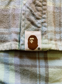 Bape A Bathing Ape Hooded Checkered Flannel Shirt Baby Blue / Purple Size XL Gently used, light wear to fabric - 8/10 - 100% Authentic