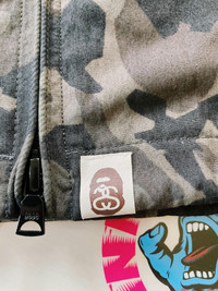 Bape A Bathing Ape X Stussy Coach Jacket Dark Camo Size M Gently used, light cut on front, light wear to cuff straps - 8/10 - 100% Authentic