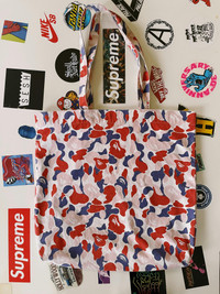 Vintage Y2K Bape A Bathing Ape Camo Tote Bag Red / Blue / White Gently used, small mark inside, small scratch on bottom and wear to right corner - 8/10 - 100% Authentic Measurements : 41 x 40 cm / 16.14 x 15.75 in