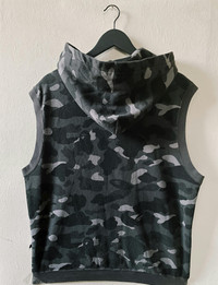 Vintage Y2K Bape A Bathing Ape Sleeveless Zip Hoodie Camo Black / Gray Size L Gently used, light wear / decoloration to fabric - 8/10 - 100% Authentic