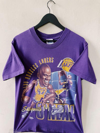 Vintage 90s NBA Pro Player Shaquille O'Neal Los Angeles Lakers T-shirt Purple Size M Gently used, light craking to print - 8.5/10 - 100% Authentic