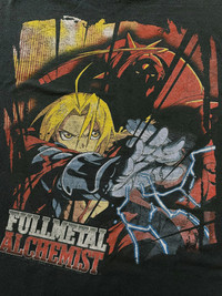 Vintage Y2K 2005 FMA Full Metal Alchemist FMA T-shirt Black Size M Used, wear and discoloration to fabric, craking to front and back print - 6.5/10 - 100% Authentic Great vintage fade