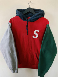 Supreme S Logo Colorblocked Hoodie Grey / Red / Green / Navy Size XL - Season SS19 Gently used, light wear to fabric and a couple of pulls from the S logo - 8/10 - 100% Authentic