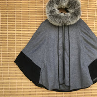 Balmain Cape Cloak Fashion Week Wool fur trimmed