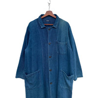 VINTAGE PLANTATION ISSEY MIYAKE LONG JACKET SOFT DENIM FADED BLUE MINIMALIST AVANT GARDE JACKET MADE