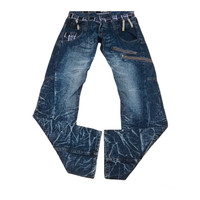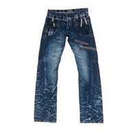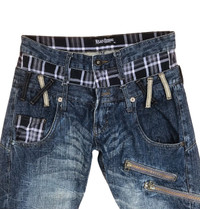 Distressed Denim - Nylaus distressed heringbone zipper double waist